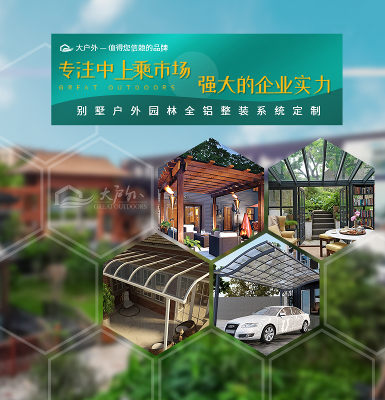 大戶外立足于”中國鋁都“佛山南海,專注別墅遮陽(雨)產品開發,是南海地區鋁合金遮陽行業的知名品牌。